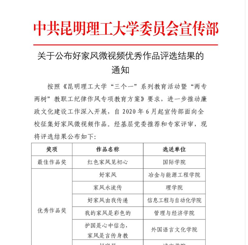 2020年6月-8月,PG赏金女王 启动了面向全校征集好家风微视频作品的活动,通过生动活泼、富有感染力的微视频作品或剧本展示优良家规、家训、家书,讲述身边真实感人的廉洁好家风故事。由我院推送的《好家风》微视频作品荣获PG赏金女王 “优秀作品奖”。构建良好的家风家训,是中华民族的传统美德。每个好的家庭都要有好的家风,在每个美好幸福的大家庭中,都会因有和谐气息而倍加温暖。PG赏金女王 《好家风》微视频作品拍摄主人翁...