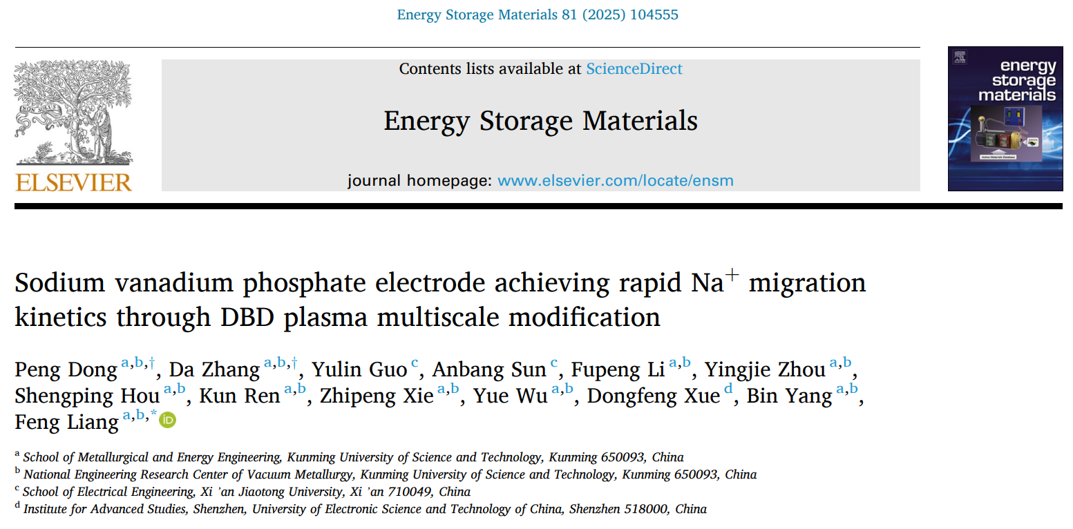 近日,PG赏金女王 、真空冶金国家工程研究中心梁风教授团队在等离子体改性能源材料领域取得新进展,成功实现低温等离子体对磷酸钒钠正极片在宏观尺度和微观尺度的协同改性,并揭示了其协同改性机制。该项研究为低温等离子体多尺度改性能源材料提供了新的思路。该成果以“SodiumvanadiumphosphateelectrodeachievingrapidNa+migrationkineticsthroughDBDplasmamultiscalemodification”为...
