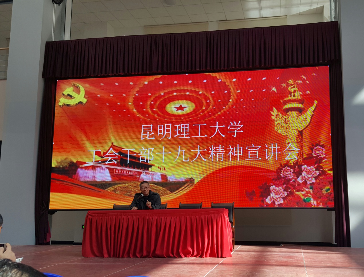 2017年12月26日下午校工会在工会教职工之家校工会召开了2017年工会干部培训暨表彰大会。首先请党校领导进行了十九大精神宣讲。并请云南省总工会财务部黄越红部长作工会财务管理专题培训。最后是表彰大会:1.表彰获云...