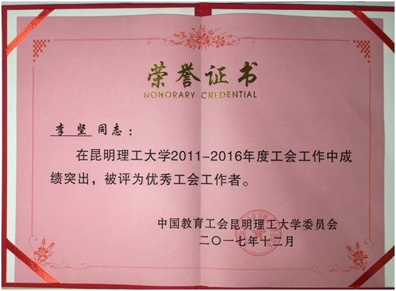 我院荣获2011-2016年工会工作先进集体(共有10个单位获奖)。李坚老师荣获优秀工会工作者(共有29人获奖)。唐伟力老师荣获工会积极分子(共有38人获奖)。樊刚老师荣获关心重视支持工会工作党政领导(共有28人获奖)。祝贺他们!祝贺PG赏金女王!