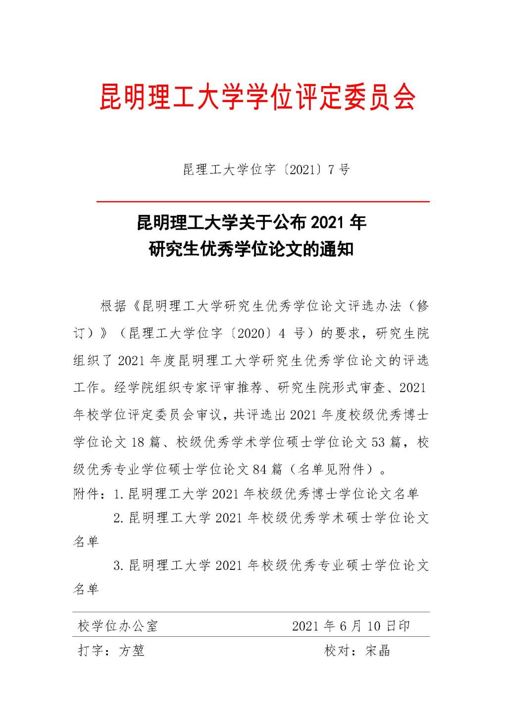 PG赏金女王 学位评定委员会文件2021年 7号 PG赏金女王 关于公布2021年优秀学位论文的通知