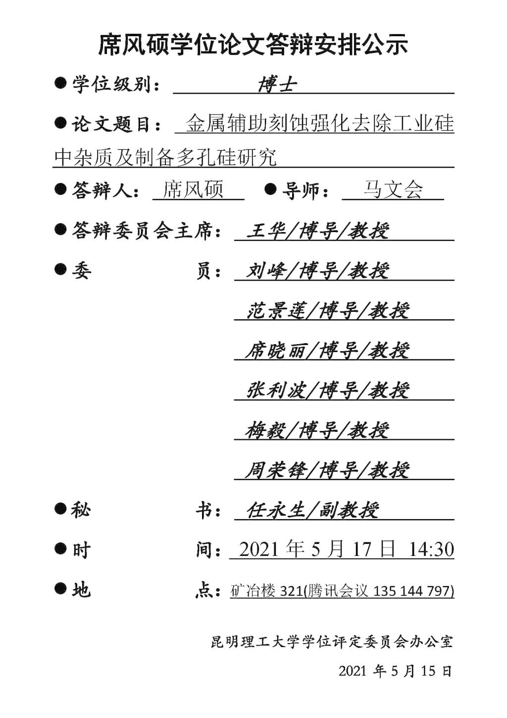 下一条:冶能博士学位论文答辩公示--杨时聪2021,5.17