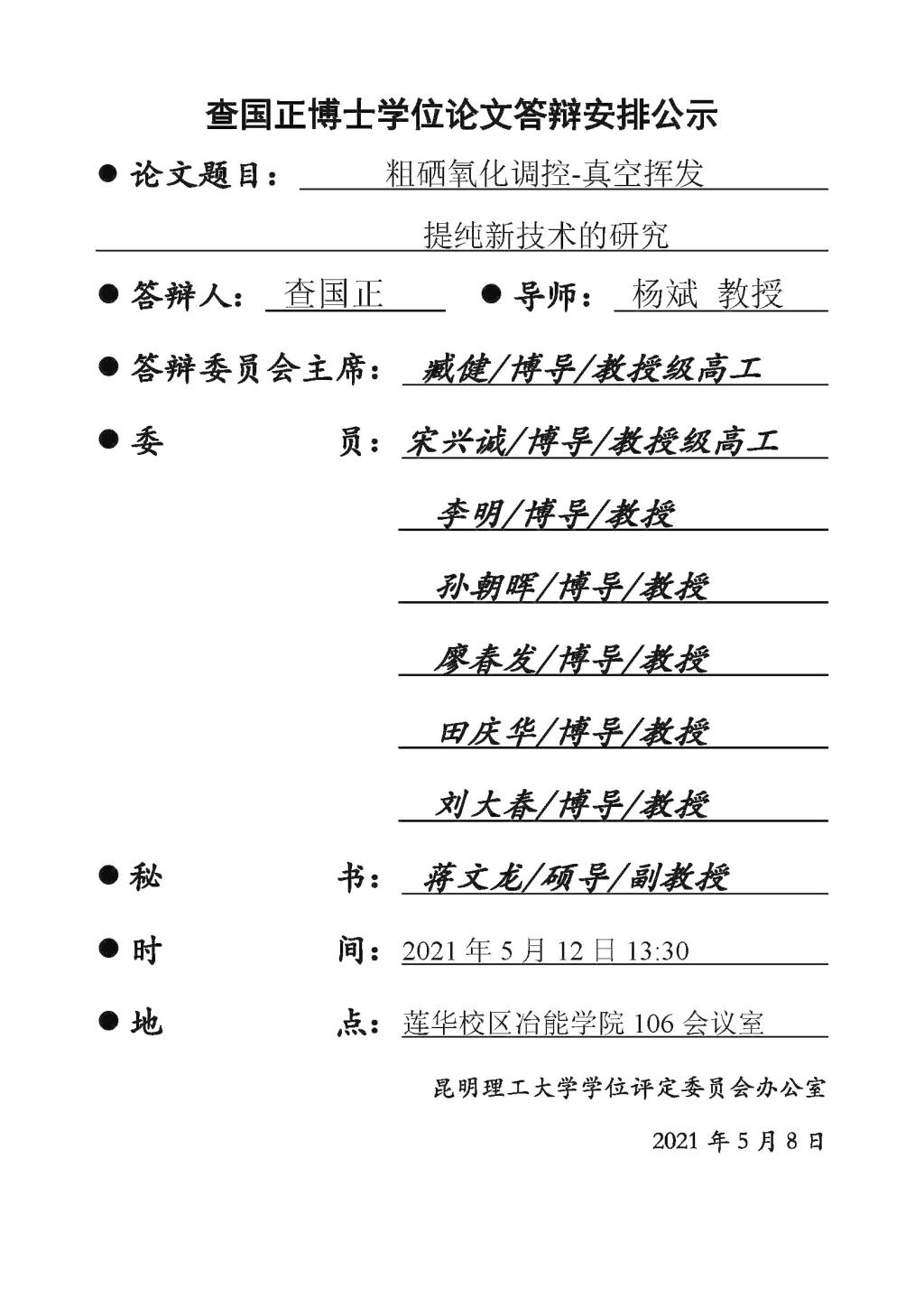 冶能博士学位论文答辩公示--查国正2021,5.12