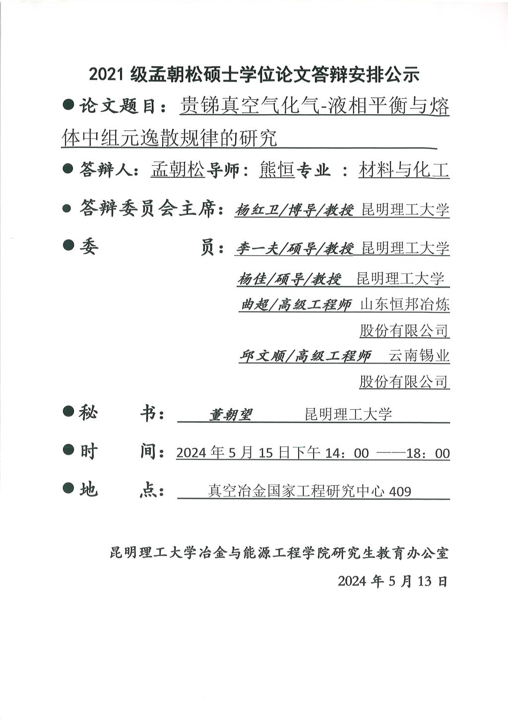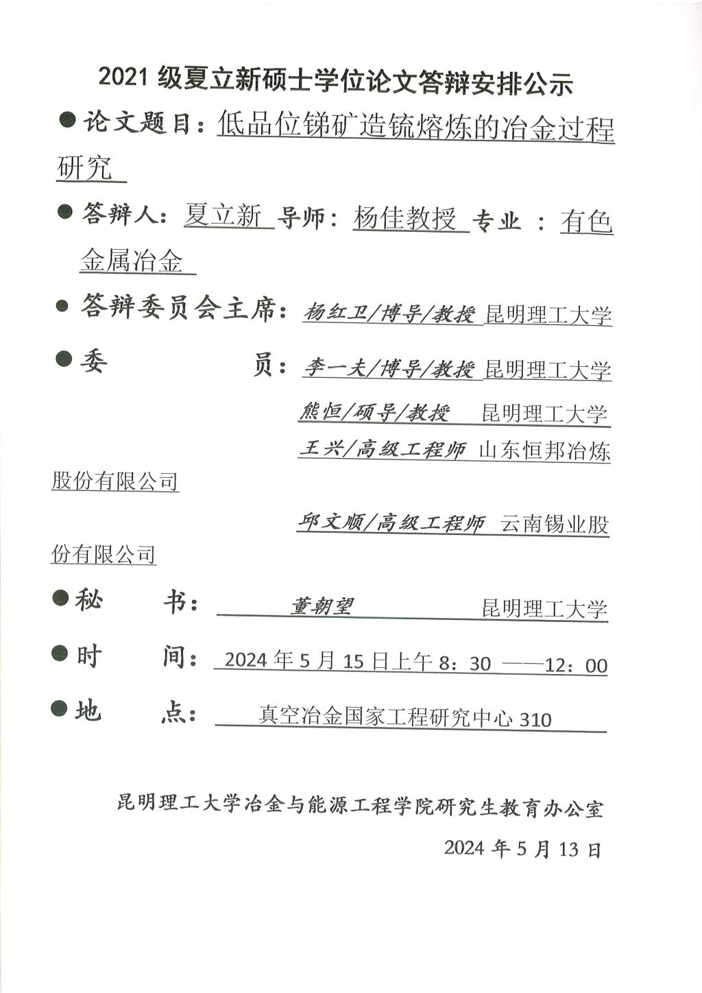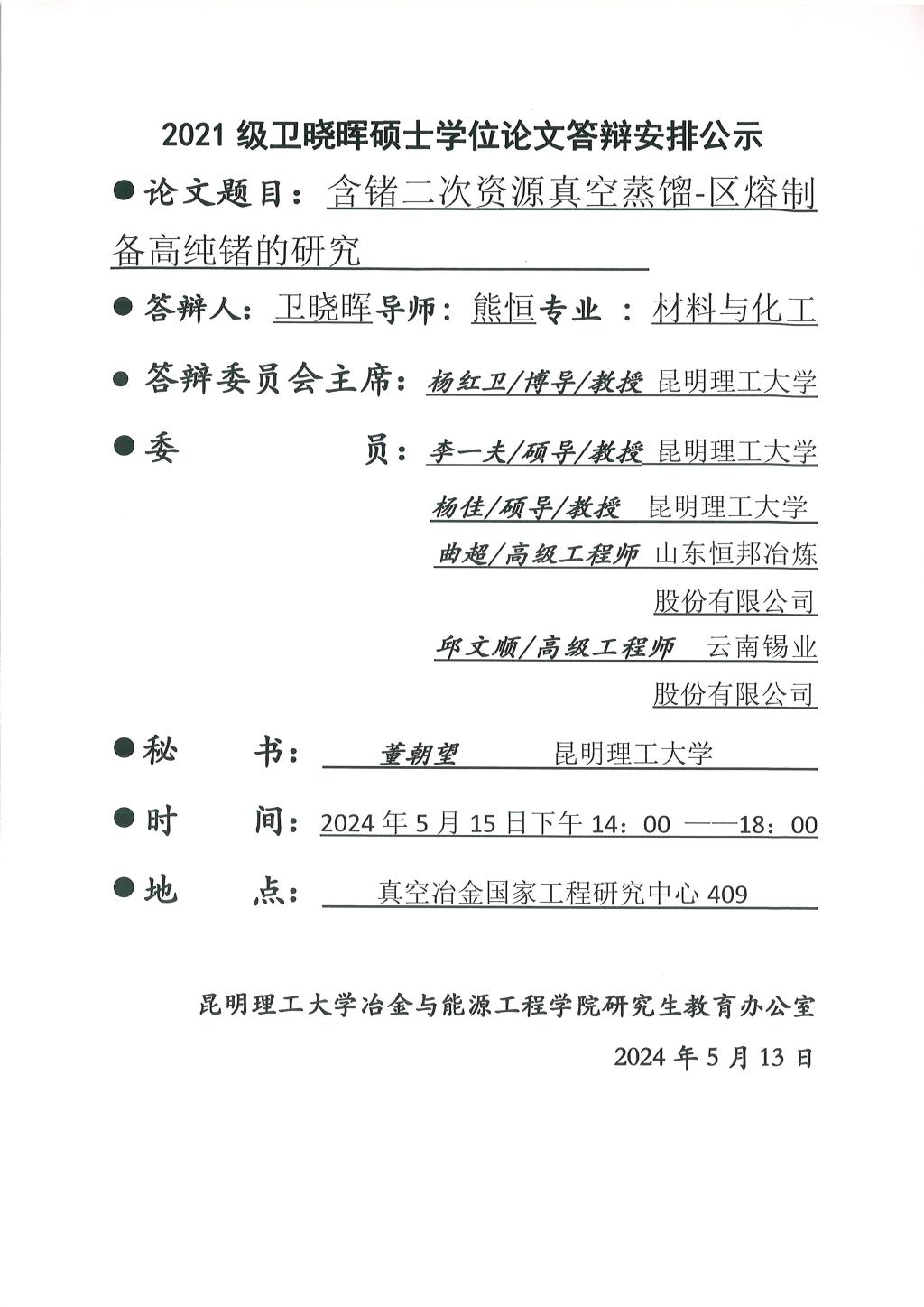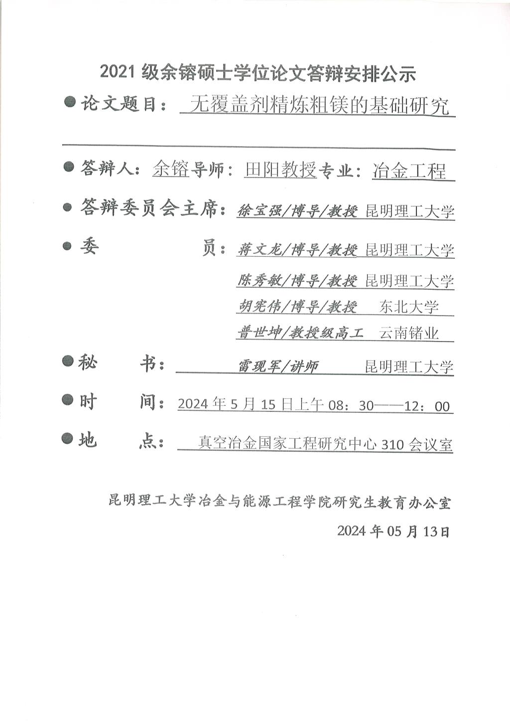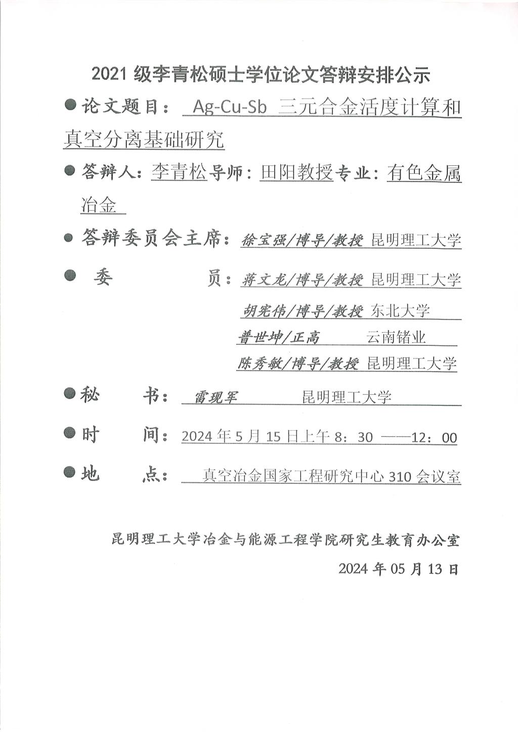 下一条:2024年硕士论文答辩公示——刘青青,杨继蓉,罗光涛,任雁荣2024.5.15