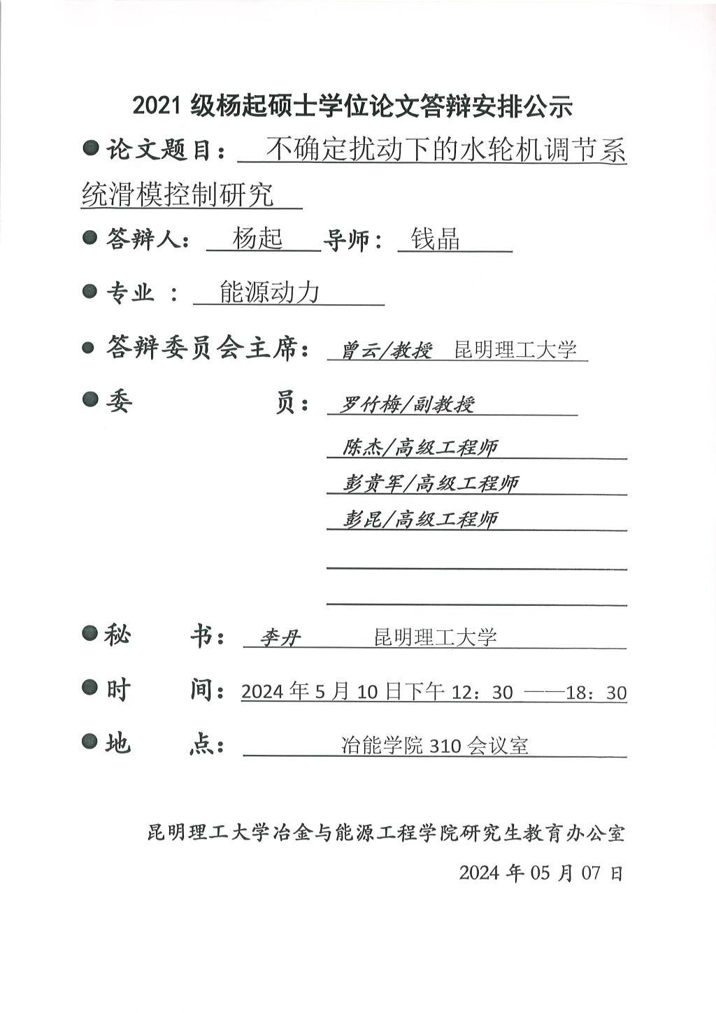 下一条:2024年硕士论文答辩公示——黄振玲,顾光凯,赵亮2024.5.13