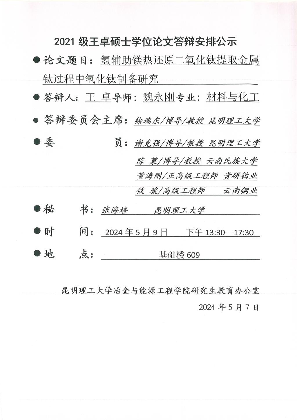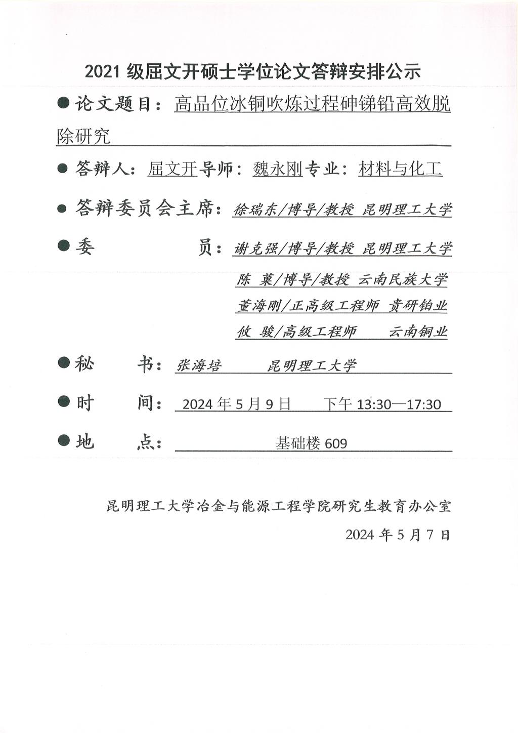 2024年硕士论文答辩公示——自高勇2024.5.12