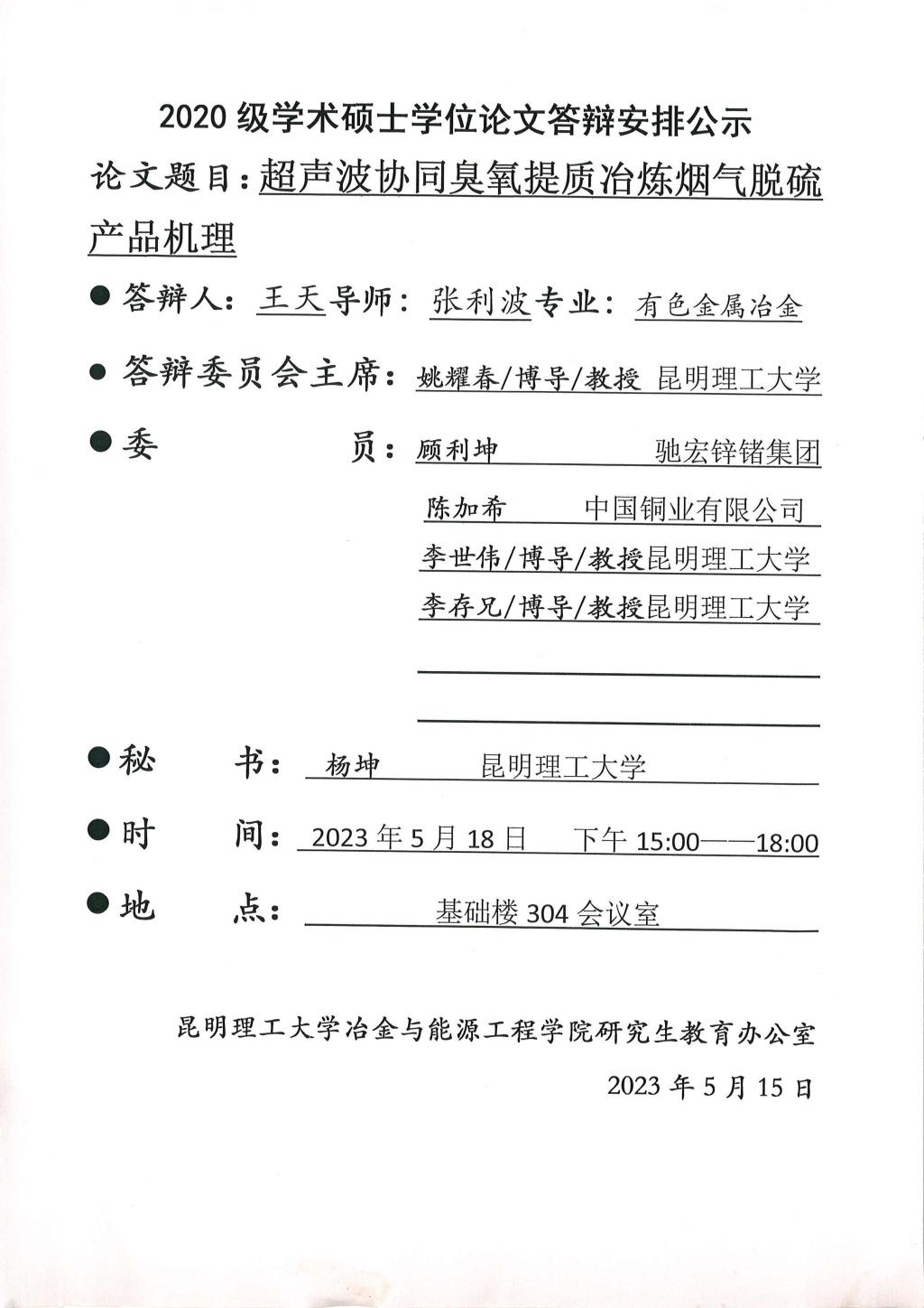 下一条:硕士学位论文答辩公示——吴旭东,吴京远,李文杰,廖亚楠,陈文哲,汤君瑞,申鑫,王江涛,周星,王恒,闫桂枝,史佳豪——2023.05.17