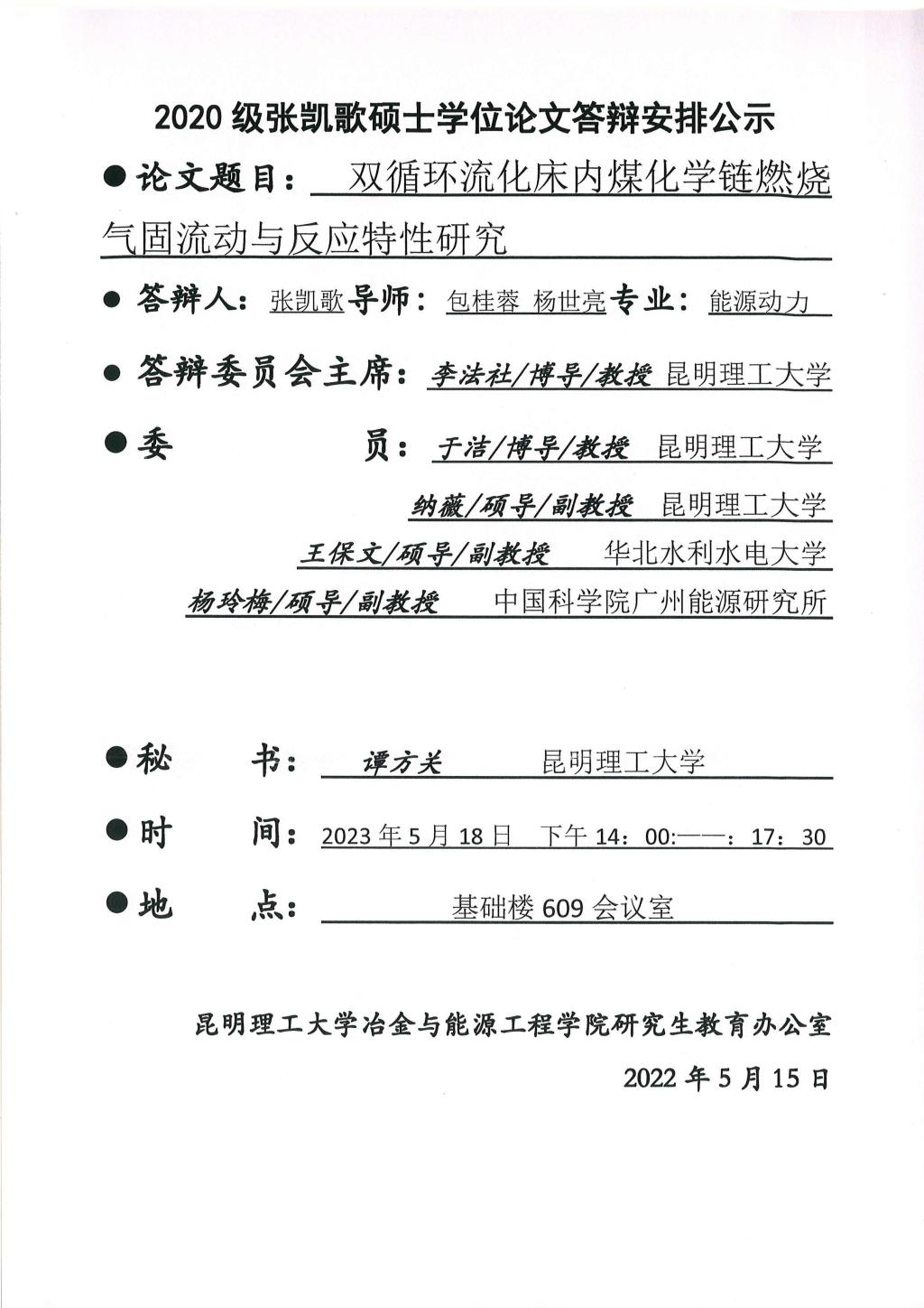 硕士学位论文答辩公示——张群辉,杨昌,李睿杰——2023.05.17