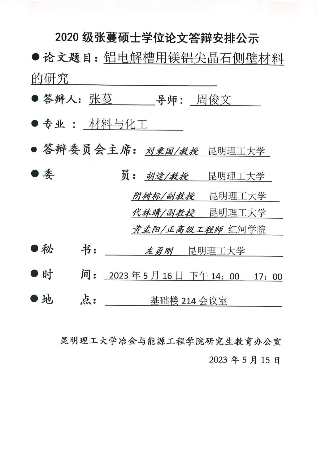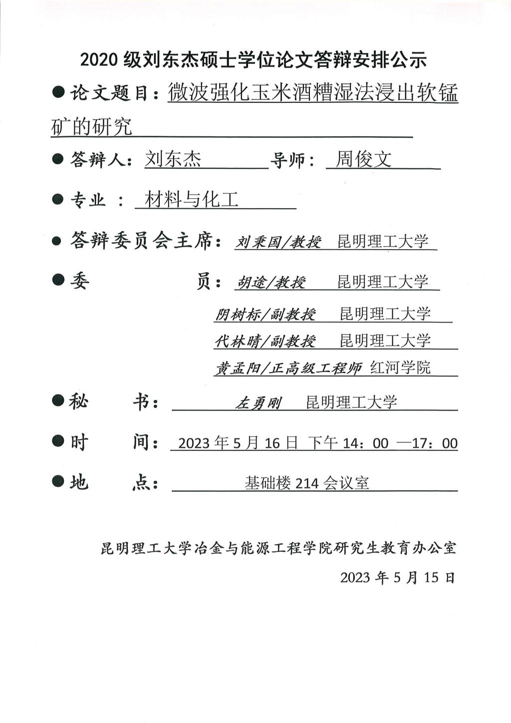 硕士学位论文答辩公示——刘东杰,张蔓,杨楚璇——2023.05.16