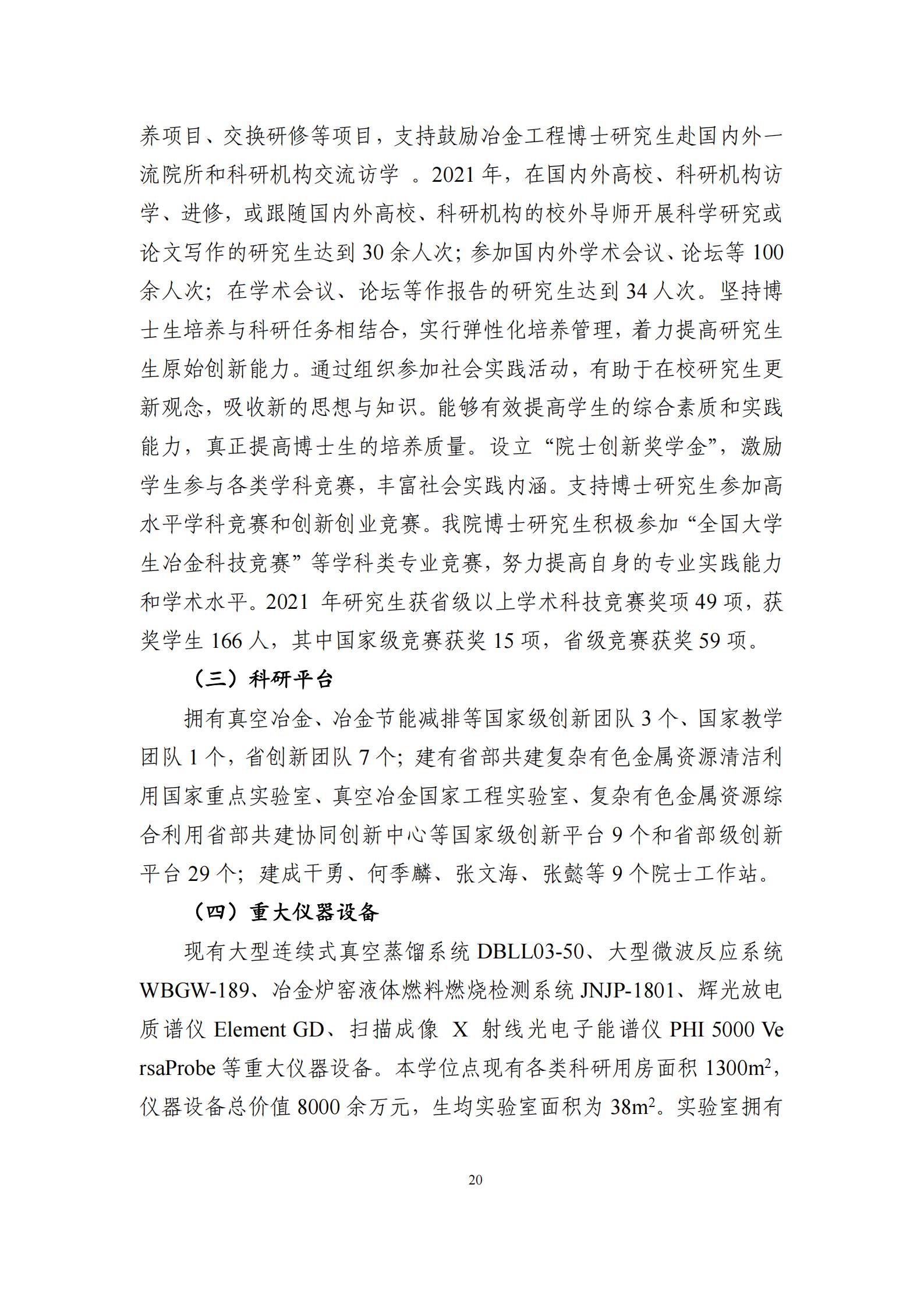 2020年度博士学位授权点建设年度报告(冶金工程)