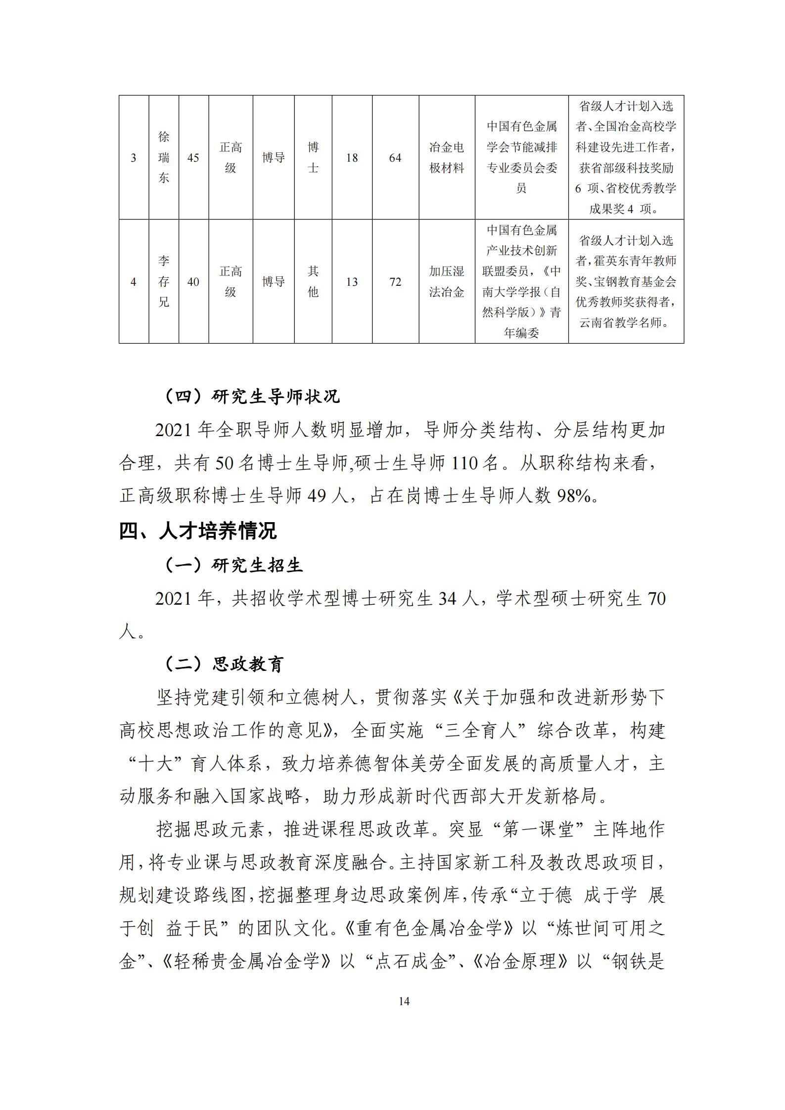2021年度博士学位授权点建设年度报告(冶金工程)