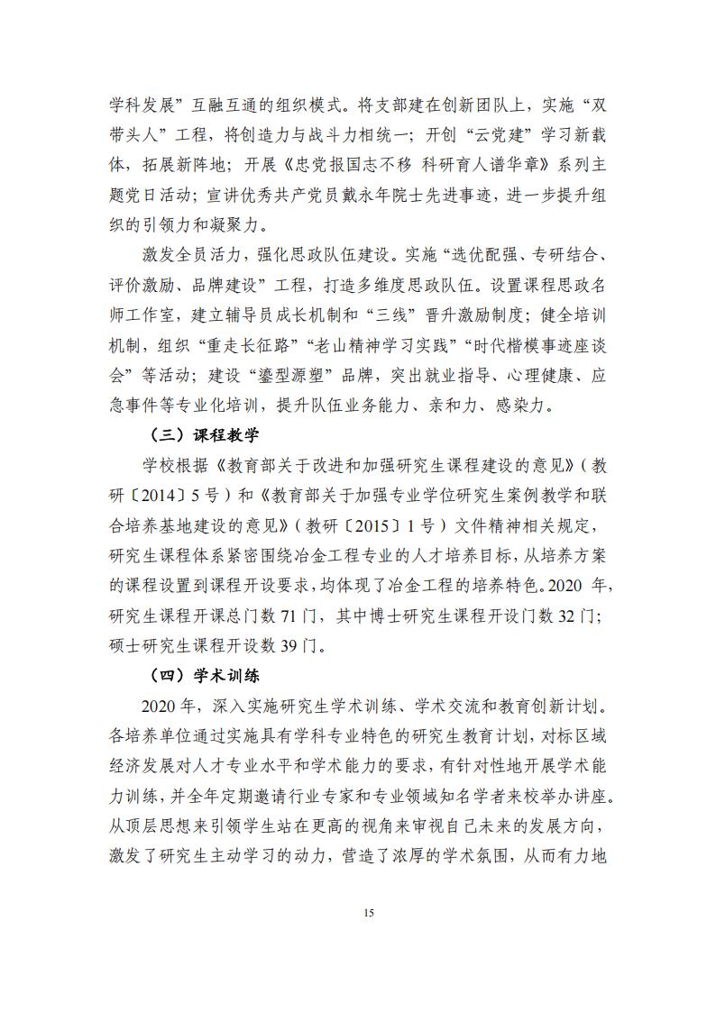 2020年度博士学位授权点建设年度报告(冶金工程)