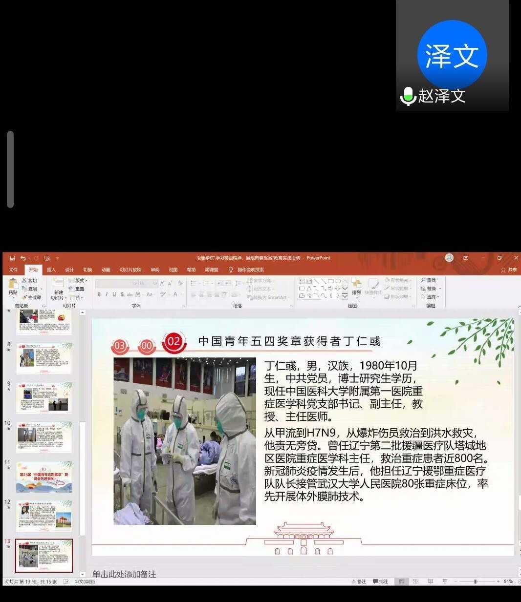 团委学生组织部召开青马工程第五期“学习寄语精神 展现青春担当”线上主题活动。参加活动的为青马工程第十期学员,本次活动由赵泽文和马思龙两位同学主持。