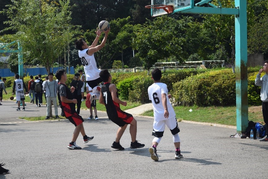 呈贡校区大一大二全体学生,以班级为单位,每班组织一支篮球队参赛,采用标准赛制。各班在进行了两周的角逐后,迎来了决赛。当天首先开始的是能科191与冶金181的季军争夺战,比赛一开始,双方就展开了激烈角逐,队员们精神抖擞的摆开姿势,开始激烈的抢球,断球,防守,进攻模式。场外的拉拉队也情绪饱满的为运动员们加油打气。下半场比赛进入白热化阶段,两支队伍都咬紧牙关,尽力抓住机会,一轮轮地投球。观众亦激情四射,拉拉队喊得气势磅礴。最终冶金181夺得了季军。