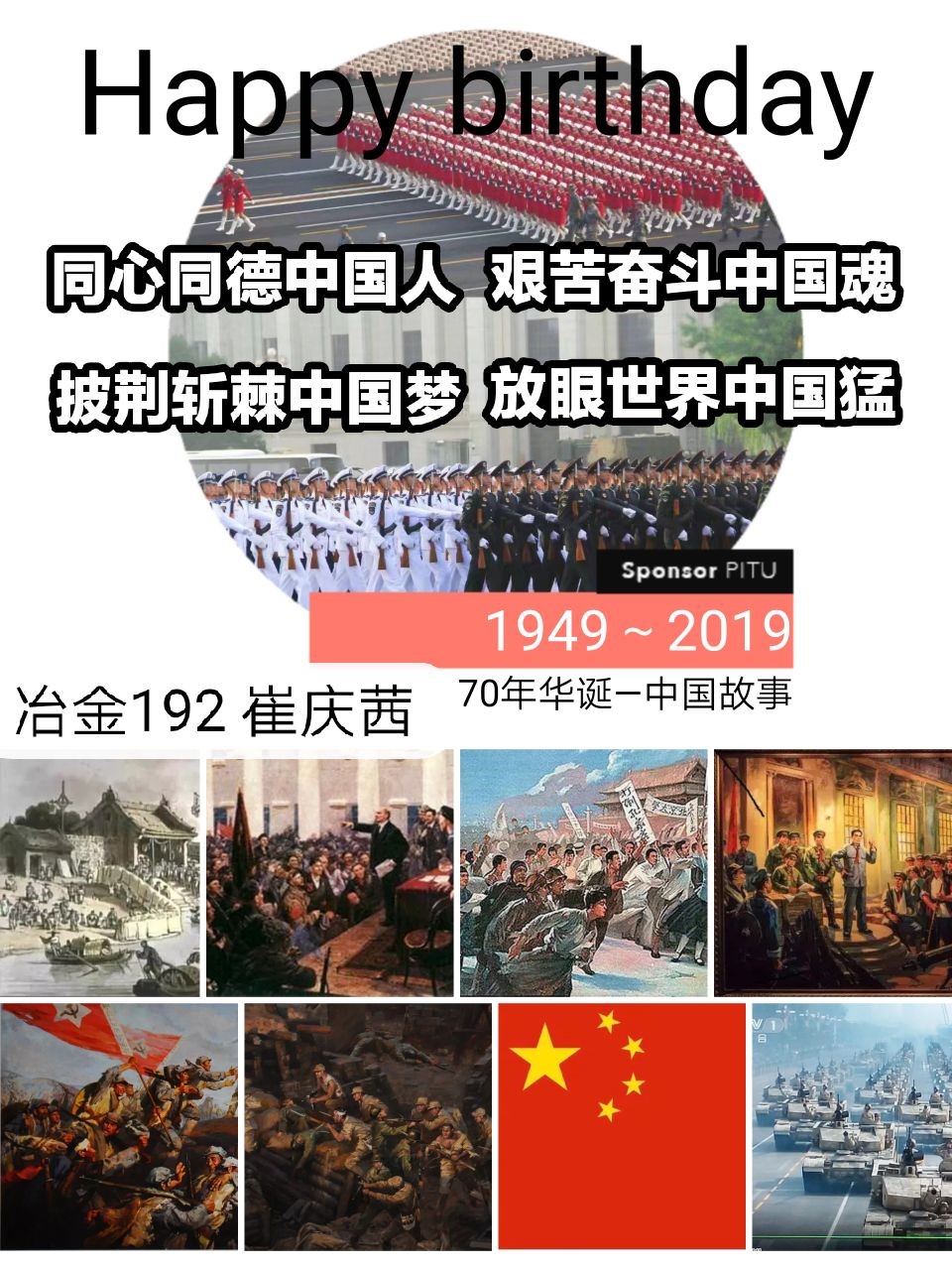 此次活动采取线上报名参赛的形式,通过班委在班群里进行宣传,加入活动群后,在规定时间内将作品上传到活动群中。此次活动的作品不限形式,书画、作品等成为了同学们表达对祖国母亲祝福的一种载体。同学们各显神通,有的为祖国写了一首振奋人心的诗;有的录制视频,将对祖国母亲的祝福亲口传达;更有甚者将祖国的美好山河汇聚于画笔下,以此表达自己对祖国的热爱。同学们热情高涨,创意十足,从中我们体会到了PG赏金女王