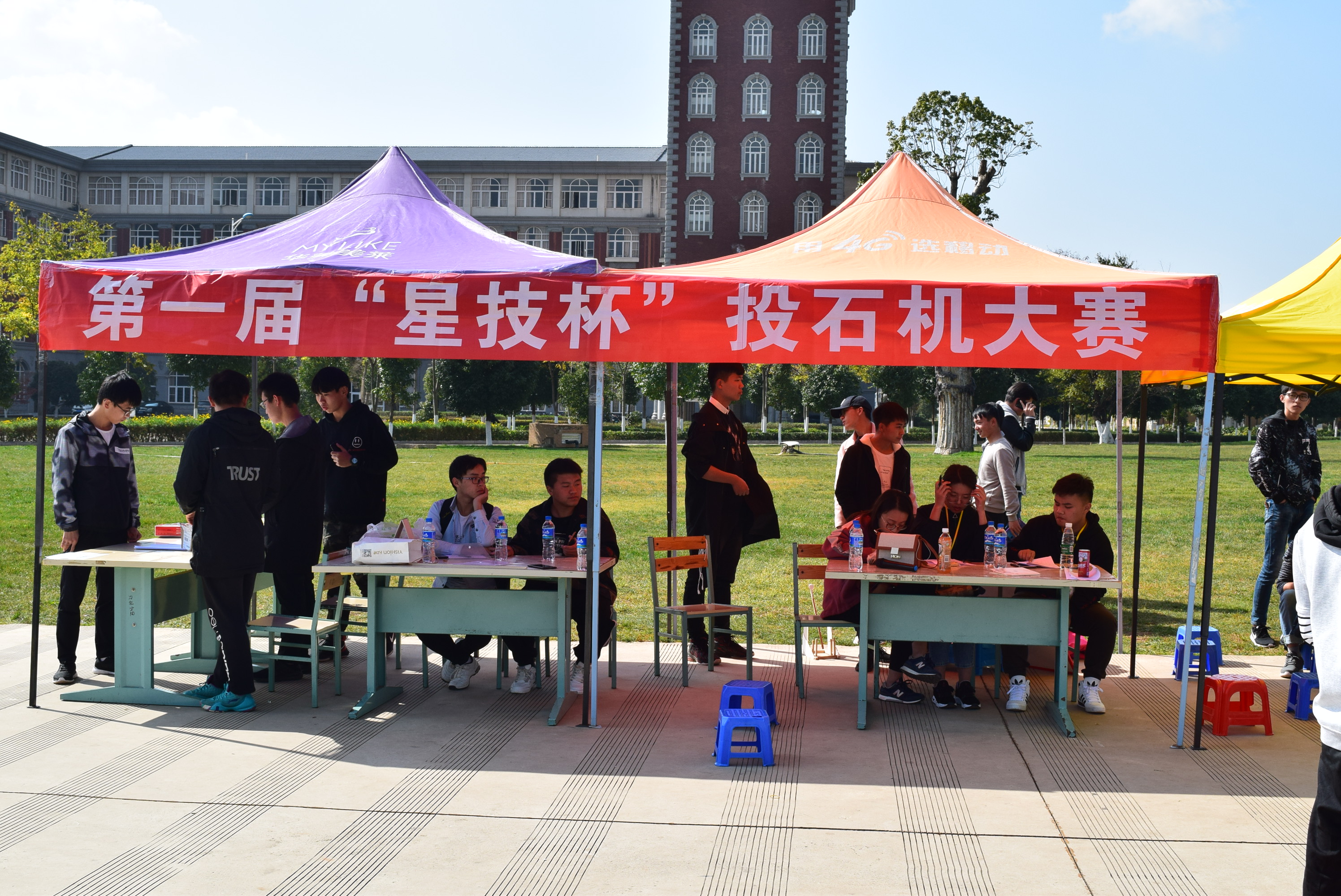 科技协会联合材料PG赏金女王科技协会在呈贡校区公教楼前的草坪上举办了第一届“星技杯”投石大赛。