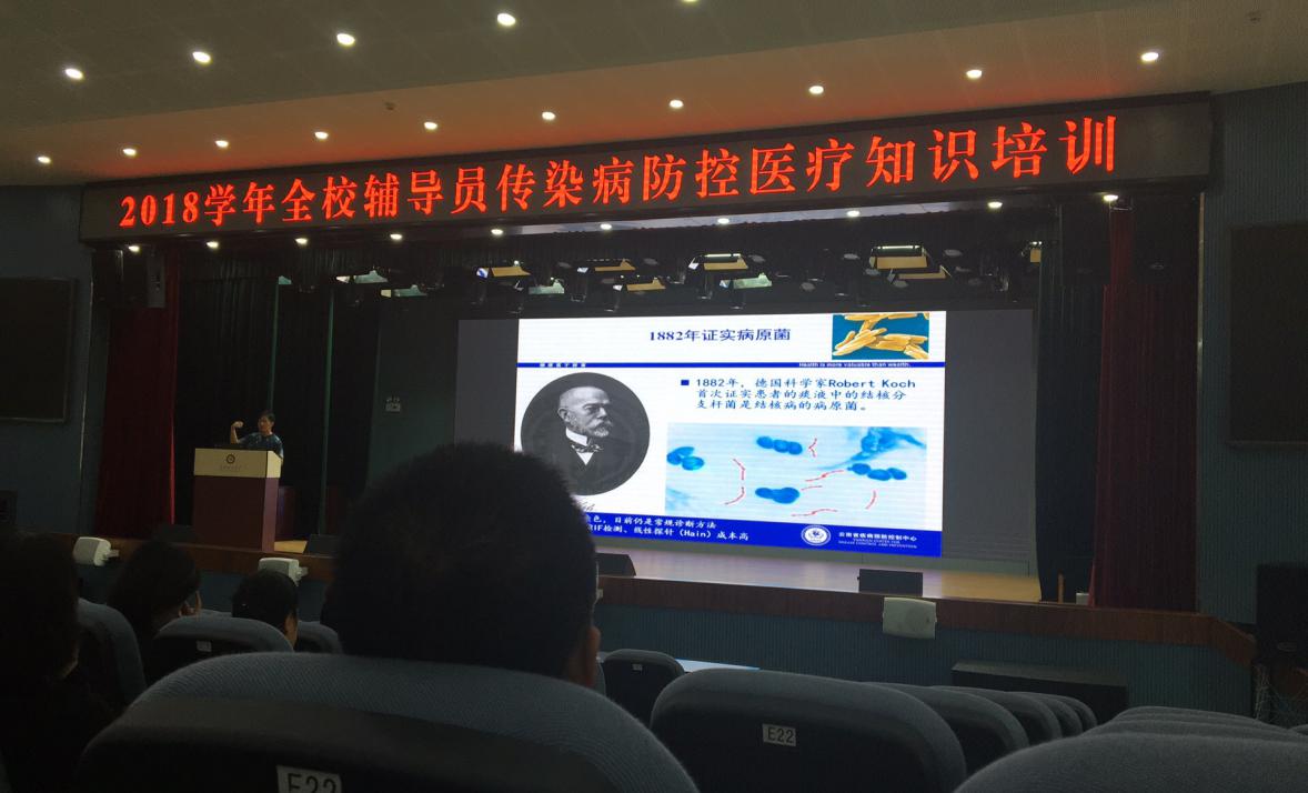 组织全体辅导员及学生代表参加传染病防控等医疗知识培训。