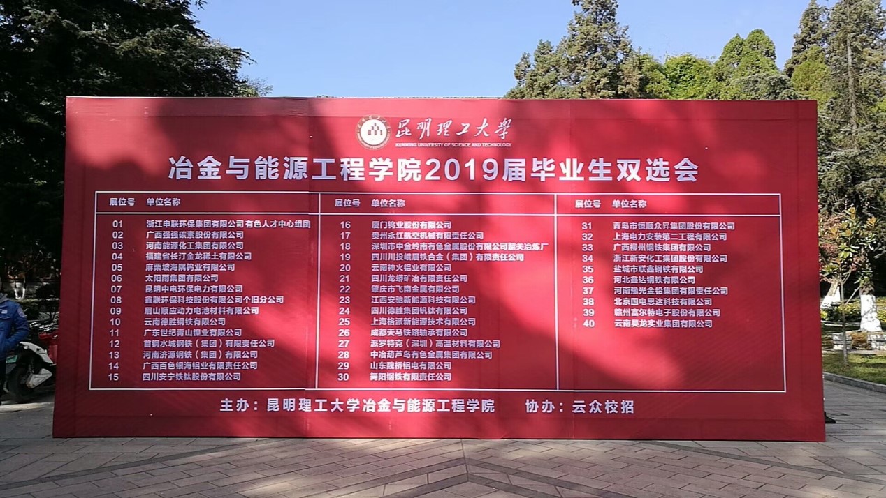 自主举办的第二届毕业生双选会。此次招聘会吸引到来自太阳雨集团有限公司、广东世纪青山镍业有限公司、昆明中电环保电力有限公司、云南神火铝业有限公司等40家全国各地的企业,共提供岗位500多个,覆盖到PG赏金女王的全部专业,400余名本科及研究生毕业生参加了双选会。