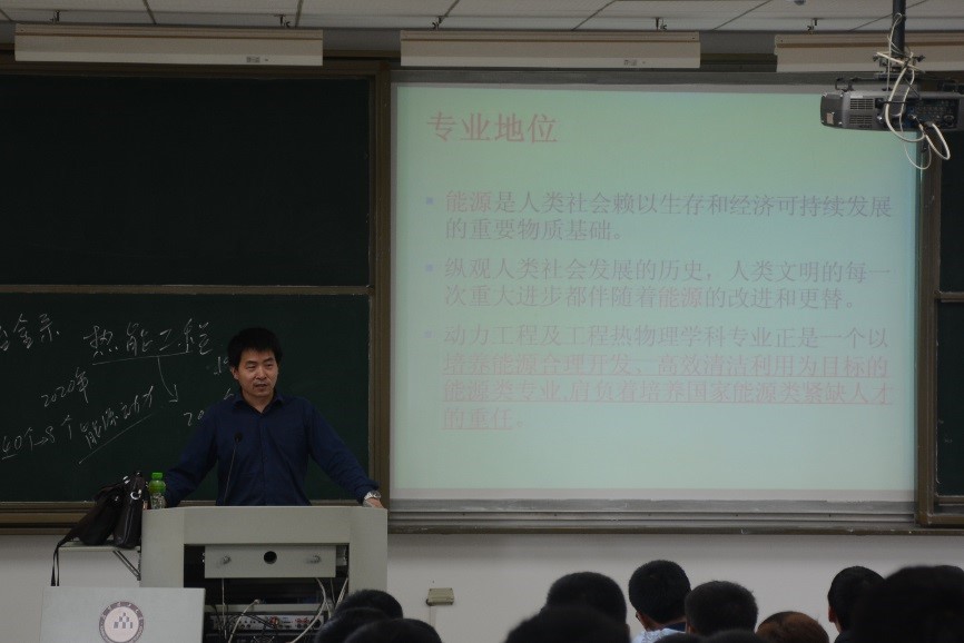 于多媒体教学楼322教室开展了能源与动力工程专业的专业介绍会。本次介绍会有幸邀请到能动系的系主任李法社老师、能动系副主任吕顺利老师、刘慧利老师和能动181班班主任陈勇老师,我院18级能动专业新生参加了本次专业介绍会。
