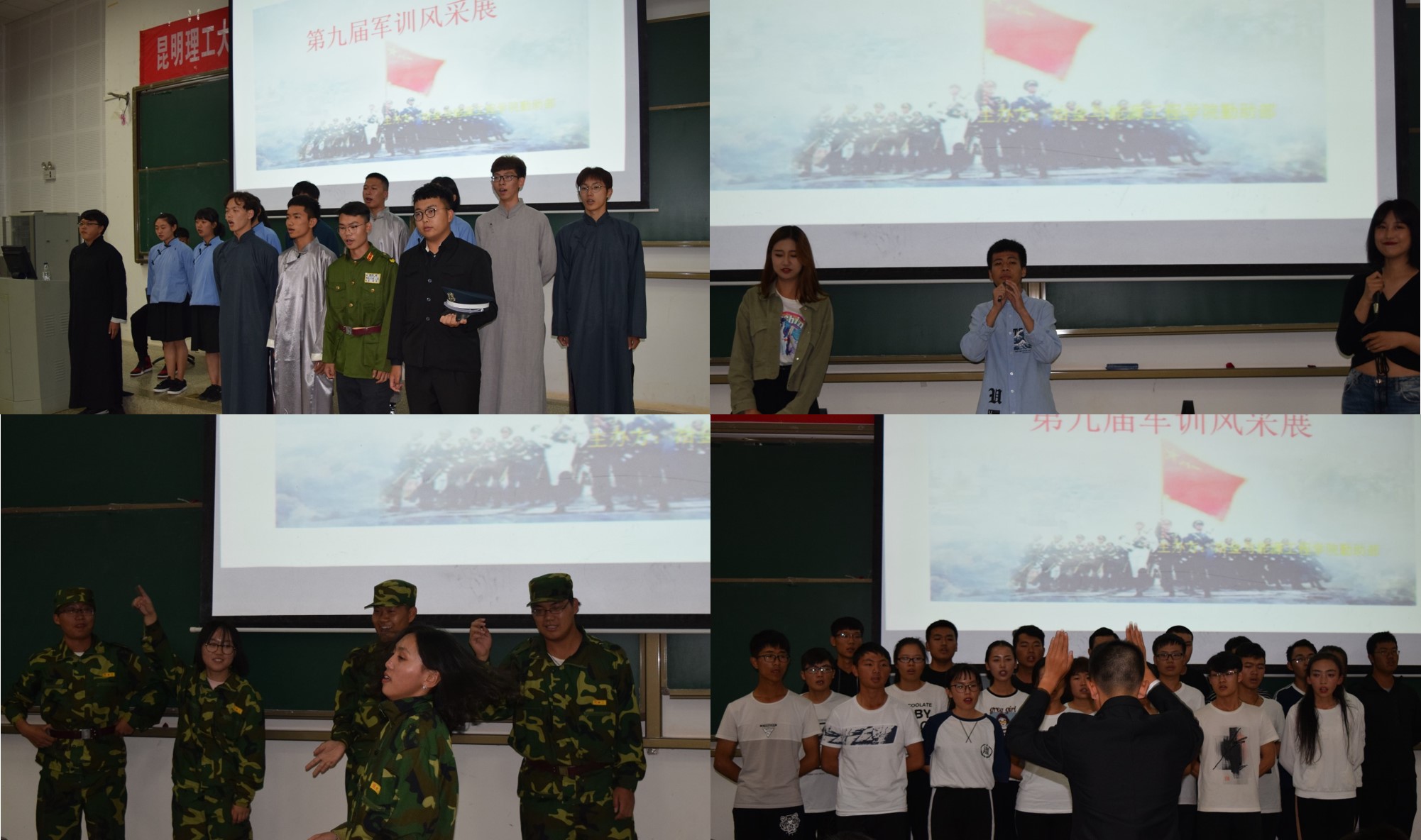 文艺部同学以一首《奔跑》开场,点燃了全场的气氛。接下来是环节是各班级的PPT展示和节目表演。同学们的PPT展现的是对军训时期的回忆和感悟,有教官和同学们的各种搞怪照片,引起了观众们的阵阵笑声,也有教官回到部队录的视频,勾起了18级新生无限的回忆。同学们的节目有歌曲串烧、小品、情景剧、还有大合唱。歌曲串烧将军训生活写进歌词中,小品还原的教官经典台词引发了同学们的掌声和欢呼,情景剧重现了解放前动荡年代中国共产党青年不屈服于敌人的严刑逼供,到最后斗争胜利的历史。大合唱将图书馆写进歌里,“走到绝望坡的尽头,坐在图书馆的门口”,唱出对未来大学生活的期望。最后杜威老师对本次的活动作出了客观的总结。在此届风采展上,能动182班荣获一等奖,冶金182班荣获二等奖,冶金菁英181班和能材181班荣获三等奖,冶金181班荣获最佳创意奖。