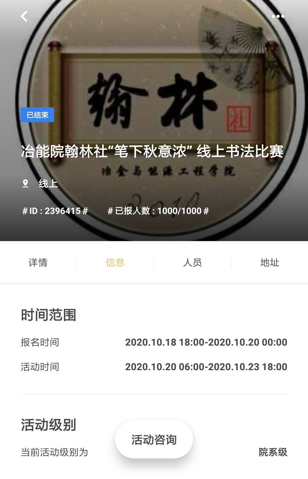 翰林社于线上开展“笔下秋意浓”线上书法比赛活动。