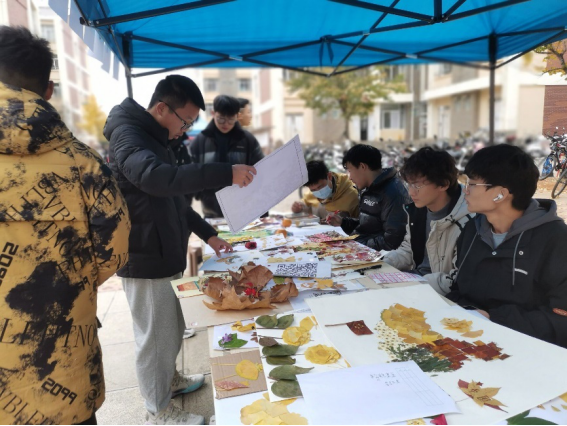 红魂青年社在憬园小广场开展了“以叶为墨,以花为情,为祖国献画”主题活动。