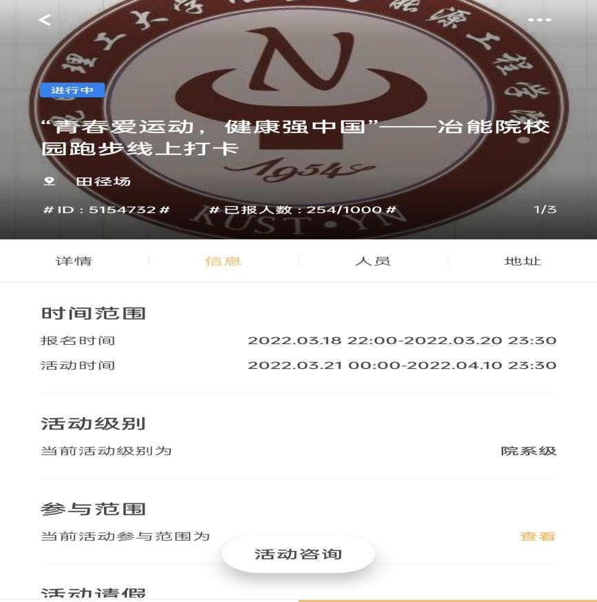 举办了"青春爱运动,健康强中国"校园跑步线上打卡活动。