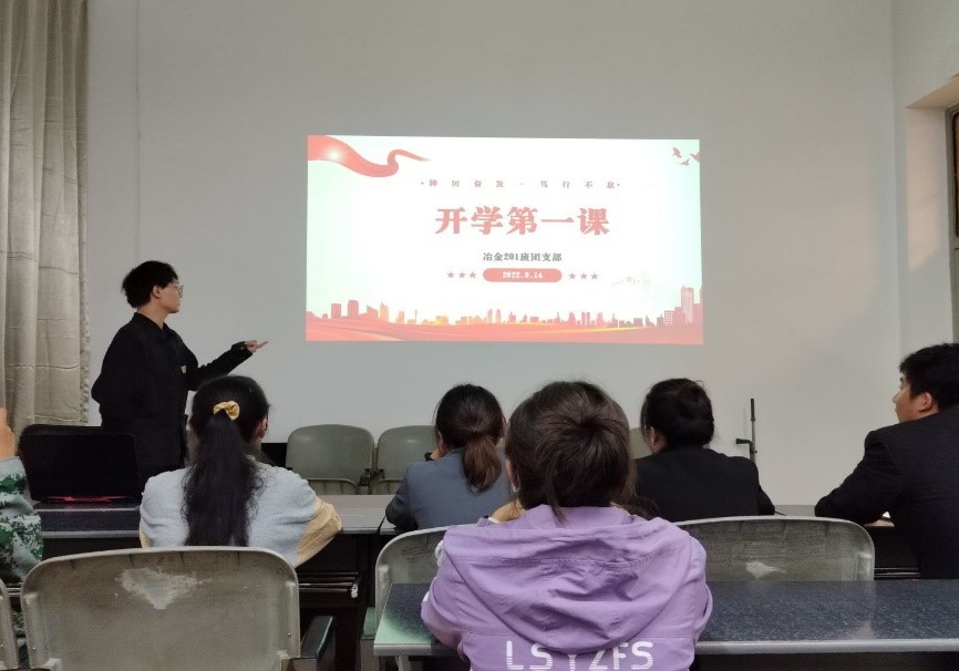 在冶能楼108教室开展“开学第一课”精品主题团日活动院级答辩。答辩班级团支书及答辩评委小组参加本次活动。