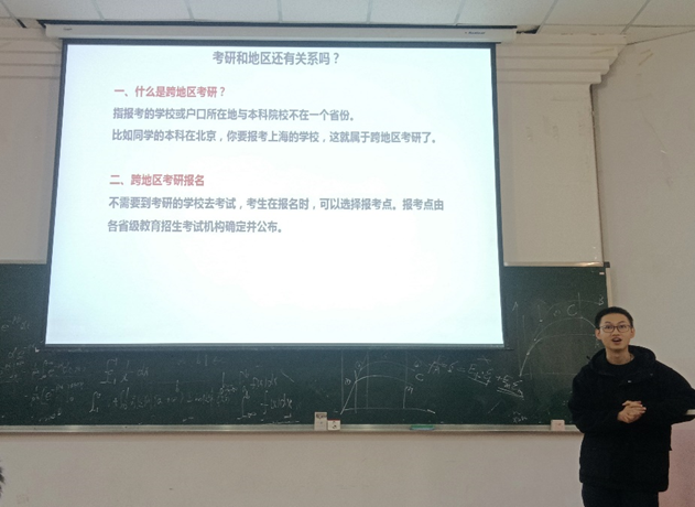 讲座以“是否赞成高校约束学生作息”这一主题为引,与同学们探讨目前大学生的学习生活作息状况,告诫大家要珍惜时光,努力提高自身综合能力素质。随后,张老师分析了当前的升学现状,强调了尽早明确目标、做好职业生涯规划的重要性。最后,张老师针对如何确定考研目标与院校选择给出具体建议,鼓励同学们积极备战考研。