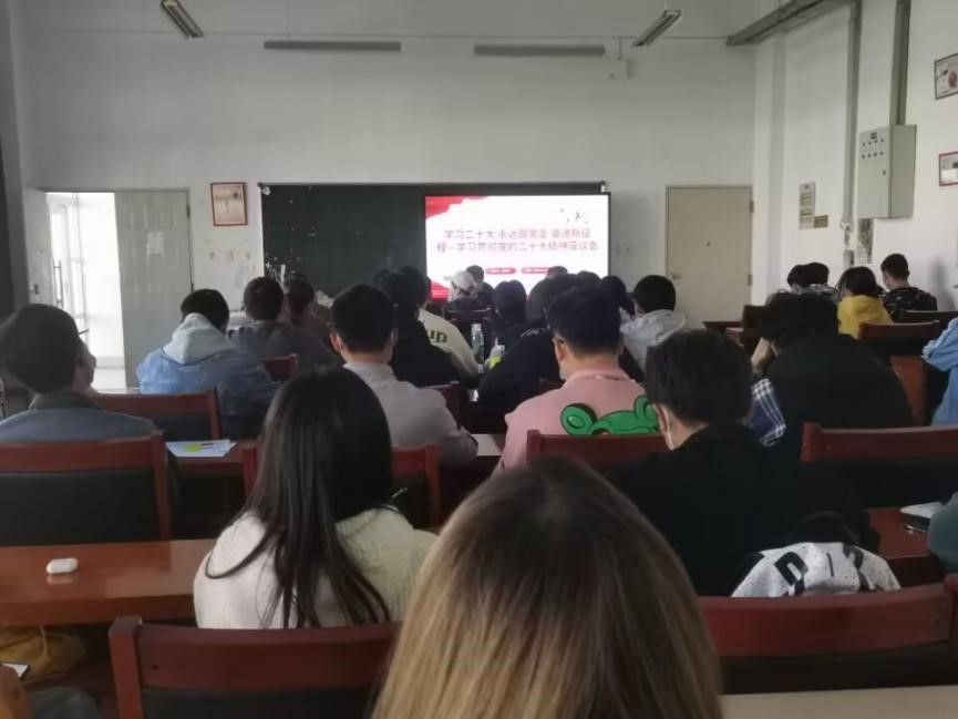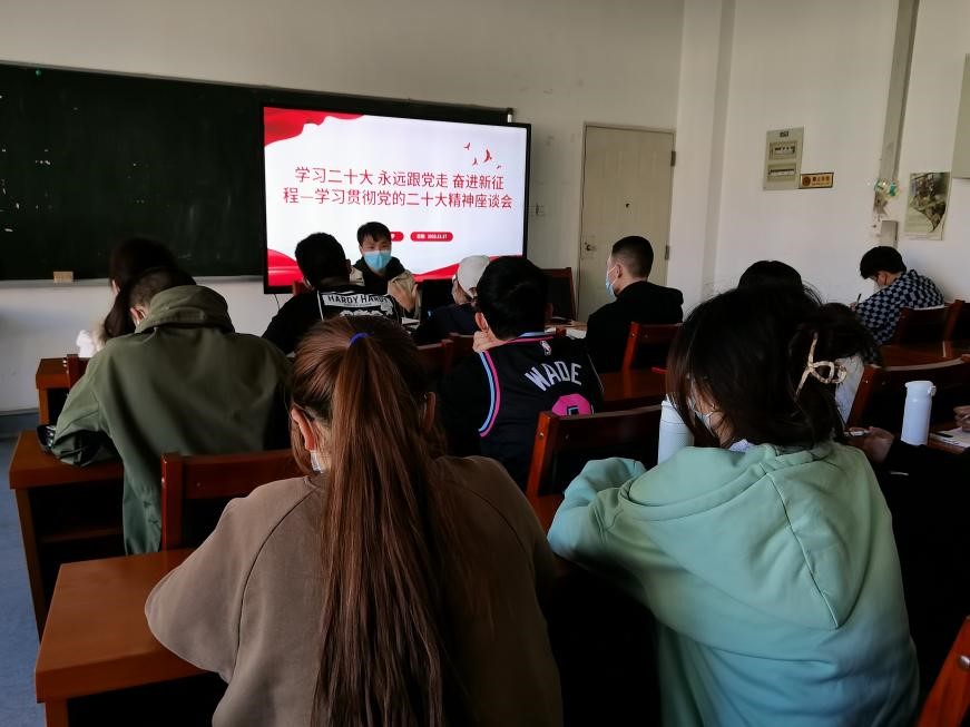 团委在管经楼104-2教室召开学习贯彻党的二十大精神座谈会。PG赏金女王团委书记崔庆宇主持会议并领学党的二十大精神,辅导员裴宇婷和全体团学干部参加会议。