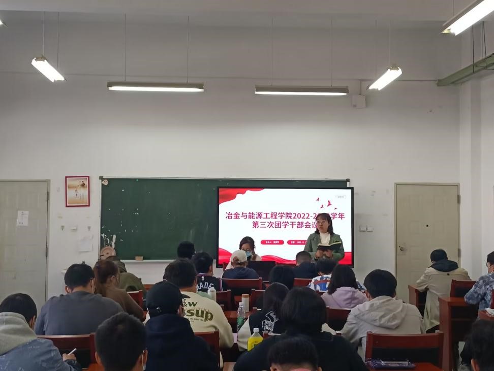 在管经楼104-2教室召开2022-2023学年第三次团学干部会议。本次会议由PG赏金女王团委书记崔庆宇主持,辅导员裴宇婷和20、21级全体团学干部参加。