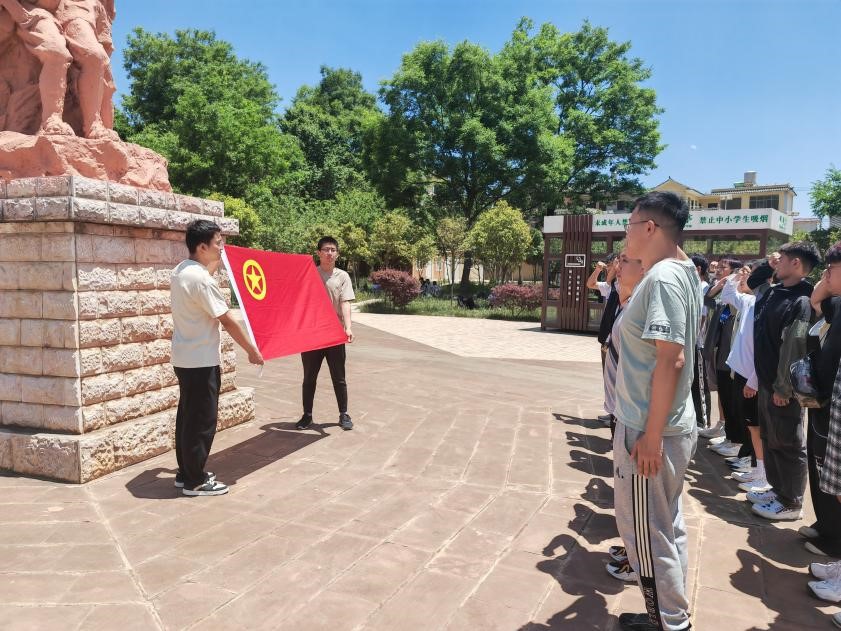抵达纪念馆,在带队教师的组织下,党员学员在党旗下庄严宣誓,重温入党誓词,团员学员在团旗下重温入团誓词,学员们铿锵有力的宣誓,表明了学员们永远跟党走的决心,更进一步坚定学员们热爱党、拥护党、跟随党的信念。