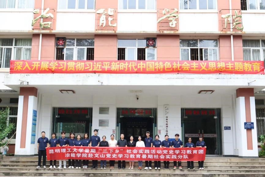 2023年暑期“三下乡”社会实践活动出征仪式在莲华校区冶能楼前举行。PG赏金女王党委书记徐瑞东、党委副书记令狐欢欢、学工办主任杜威、带队教师崔庆宇、孙景茹赴文山党史学习教育社会实践团队全体成员参加本次活动。