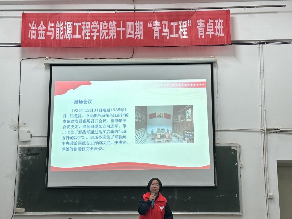 在莲华校区基础楼200教室举行“弘扬遵义精神,走好新时代长征路”主题宣讲会。本次活动邀请到青春冶能遵义会议精神宣讲团作为主讲嘉宾,第十四期“青卓班”全体学员以及2023级入团申请人参与本次活动。