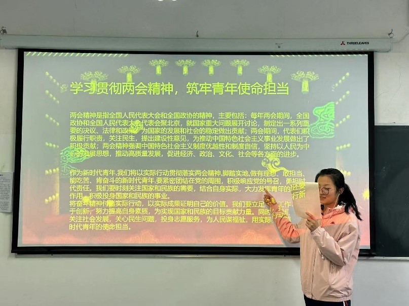 各团支部结合自身实际情况,通过学习交流会、新闻阅读、思政座谈会、参观学习实践等创新形式学思悟践党的二十大精神内涵,坚持用党的创新理论凝心铸魂,引导团员青年成为习近平新时代中国特色社会主义思想的坚定信仰者和忠实实践者。本次主题团日活动中,冶金工程专业2023级1班团支部、储能科学与工程2023级1班团支部等团支部组织集中学习两会精神,引导广大团员青年踔厉奋发、挺膺担当;能源与动力工程专业2021级绿色能源创新班团支部等团支部聚焦两会,为学生普及两会知识,培养学生爱国意识,坚定报效祖国的远大志向。
