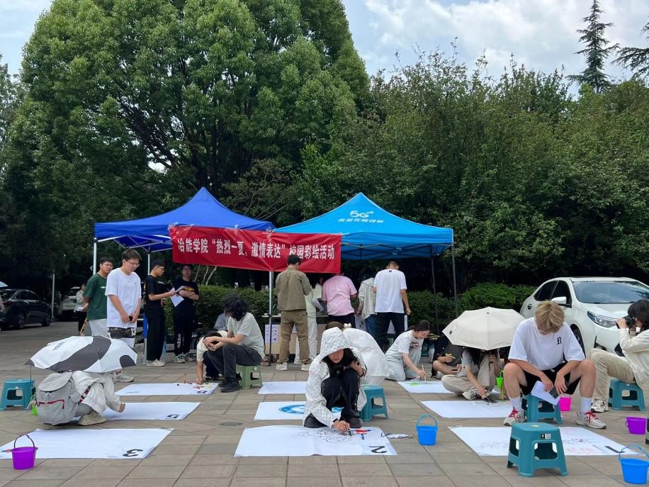 活动当天,同学们前往现场进行抽签,并根据抽到的主题进行彩绘。巨大的画布上,留下了同学们五彩斑斓的画作,有人画下色彩缤纷的物件,有人画下印象深刻的场景,还有人把各色颜料挤在手上,按下五彩缤纷的手印......活动反响热烈,同学们积极参与,纷纷在画布上留下印记。在这个热烈的夏天,大家把汗水与激情融入五彩的颜料,将一腔热情画在画布上,尽情释放着青春活力。