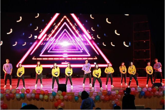 婀娜的舞姿展现了青春的绚丽多彩,台上时而激情澎湃,时而低沉严肃,同学们的表演精彩绝伦,引来一阵阵欢呼声,台上精彩仍在继续
