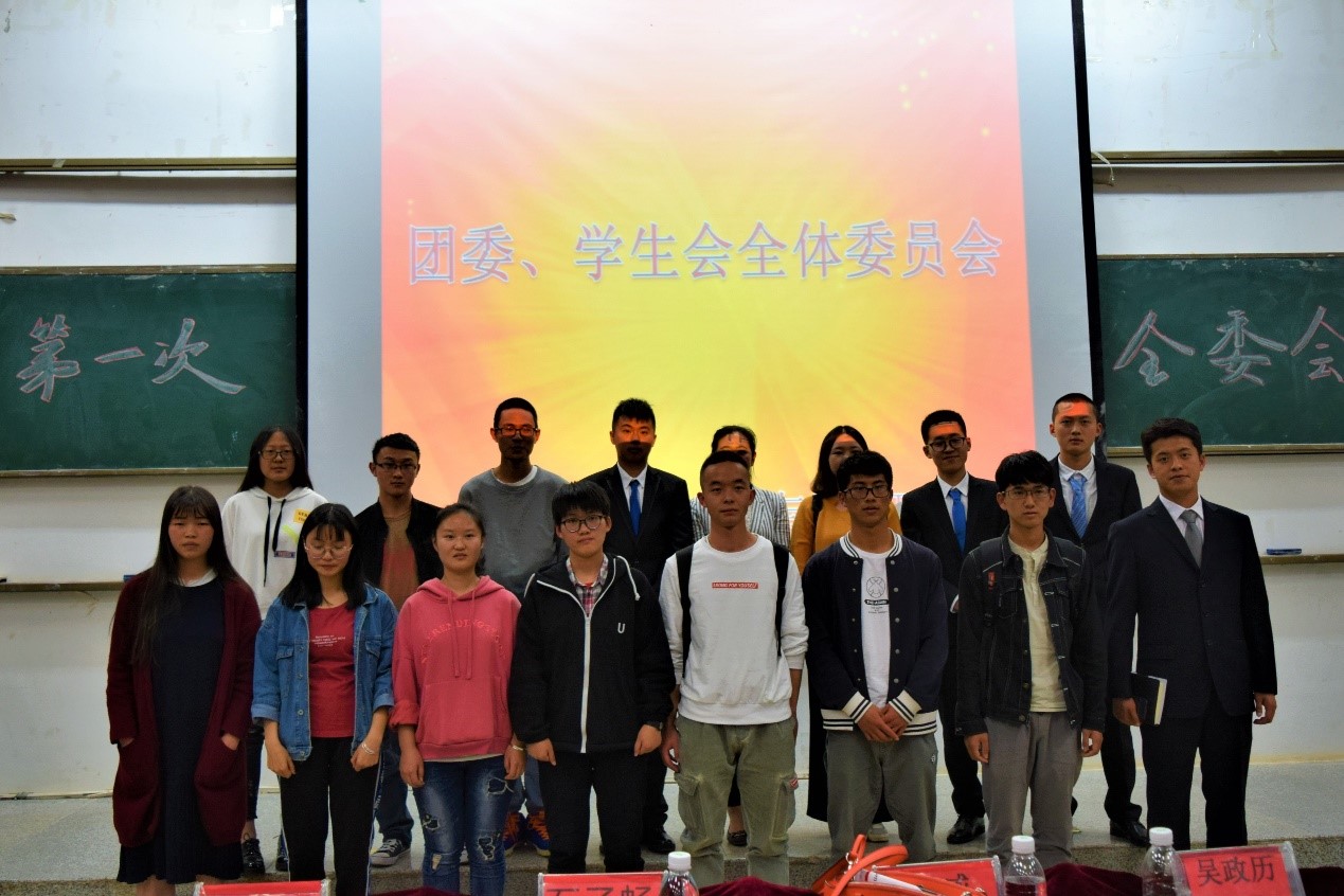 团委书记助理吴政历同学、团委秘书长李金芸同学、团委秘书长韦良权同学、学生会副主席石子畅同学、主席团助理杨鹏娇同学、主席团助理欧杨同学。2016级所有团学干部及各部门所有部委到场参会。