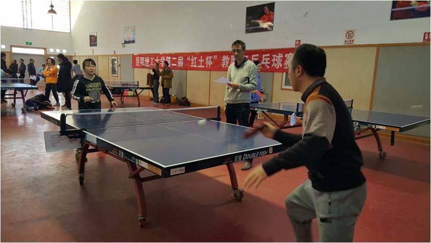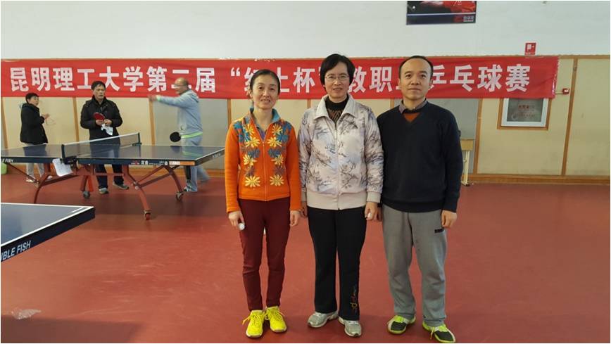 2018年1月组织我院9人参加了学校的乒乓球比赛。虽因工作忙等各种原因致使多位老师无法参赛。只有李瑛、包桂蓉、吕国强三位老师克服困难坚持比赛到最后。你们辛苦了!我们明年继续加油!