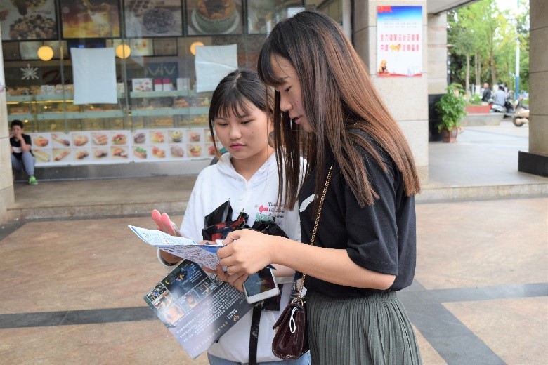 团委秘书长李金芸带领的“禁毒防艾”第一宣传小组在社区及周边进行“禁毒防艾”知识手册的发放,并对路人普及相关卫生安全知识。在进行宣传的同时我们还十分碰巧的与“上汽大众——街头采访小组”合作,一同进行了“禁毒防艾”的知识宣传,社区居民积极响应,现场十分活跃,活动效果远远超过预期。最后“上汽大众——街头采访小组”与我院第一宣传小组一同合影留念,为冶能院“三下乡”活动添上精彩的一笔。