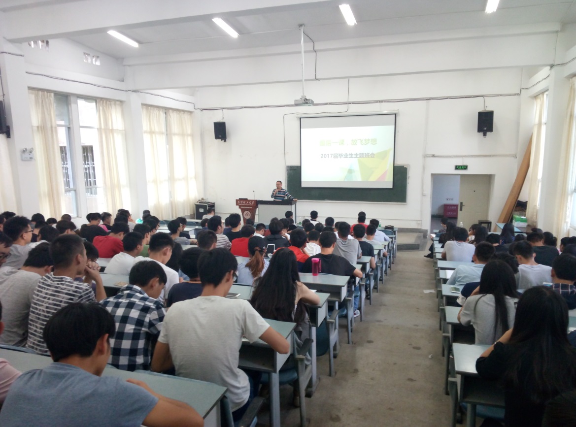在莲华校区原基础楼200分两批次召开了“最后一课,放飞梦想”2017届能动与新能源系毕业生主题班会,本次班会由院学工办刘畅老师主持,能动与新能源系主任及专业导师出席了本次大会。