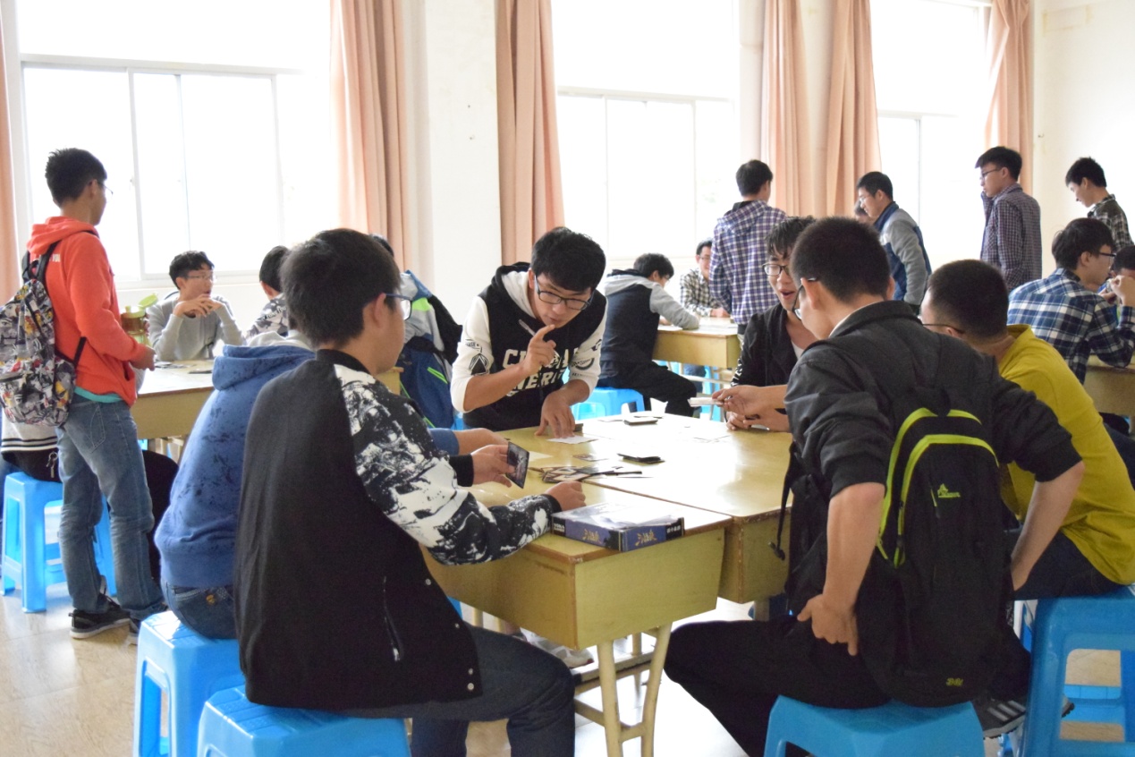 本次比赛共有三国杀、象棋、军棋、五子棋四个项目,分两天依次进行。活动开始后,每位参赛选手都在工作人员的安排下,投入到了紧张的比赛中。每张桌子都成了竞技博弈的战场,选手们或自信满满、落子果断,或深思熟虑、谨慎出牌。同学们在棋局中睿智思考,牌桌上三思慎行。本着友谊第一,比赛第二的原则,很多选手都在比赛结束后结交了志同道合的朋友。最后,经过层层选拔,各项目的佼佼者纷纷晋级,他们将于不久后进行冠军的争夺。