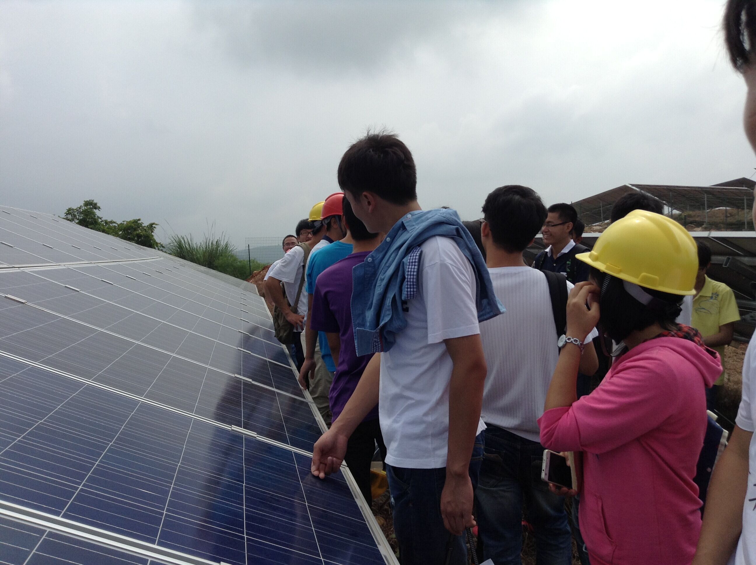在云南能投海装新能源设备有限公司,学生了解了我国风电行业的发展现状、高原风电资源的开发情况以及风力发电机组的组成部件和特点,深入装配厂区跟师傅学习风力发电机组的装配生产工艺,并且现场动手参与了部分机组的安装与调试过程。在元江甘庄电投光伏电站,学生学习了光伏电站的选址、设计和太阳能电池组件选型等相关知识,实地考察了光伏电站太阳能电池阵列的布置形式、电气配备、监控等实际问题。在昆明电研新能源科技开发有限公司,通过技术人员的讲解,学生对生物质气化、热解炭化及成型燃料技术有了初步认识;通过实际观察和操作各种家用型生物质炊事炉,到昆明昆卫洗涤中心参观了生物质流化床气化燃烧供热项目的实际应用,对生物质利用技术有了切身的体会。
