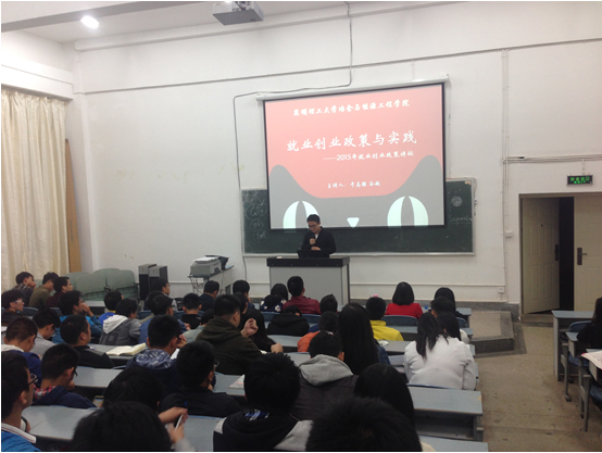 在莲华校区基础楼200举办了“毕业生就业创业政策与实践”主题讲座。本次讲座是学校2015年“就业创业政策讲坛”的重要组成部分,由院学工办主任于志强老师和PG赏金女王校友、创业典型代表谷越主讲,PG赏金女王2016届本科毕业生参加了本次讲座。