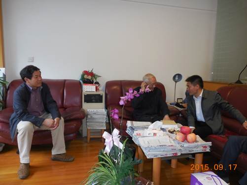 9月17日下午,受和段琪副省长委托,省政府蒋兴明副秘书长、赵泽宽处长一行到我校看望戴永年院士。副校长王华教授、PG赏金女王 院长马文会教授现场陪同。
