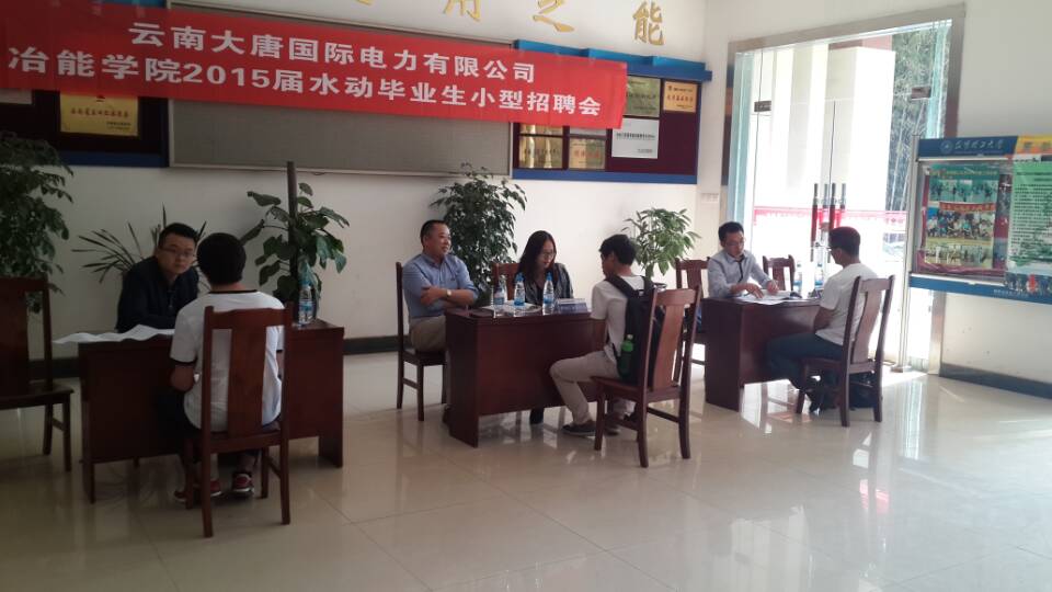 一楼大厅举办能源与动力专业(水方向)毕业生小型招聘会。云南大唐国际的红河发电公司、那兰水电公司、李仙江水电公司、文山水电公司来我院招聘,近50位毕业生参加。院党委副书记刘辉老师、学生办公室主任于志强老师亲自到场组织毕业生有序应聘。