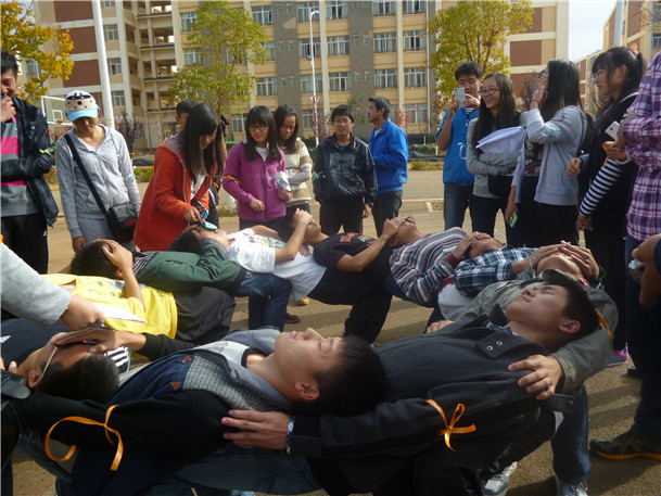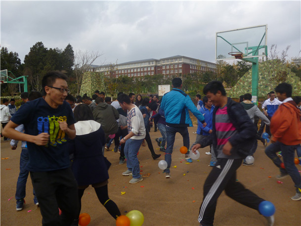 2014届学生干部大家庭增砖添瓦。活动的每个环节都有不一样的精彩。第一个环节“萝卜蹲”简单趣味,考验着各队队员的反应速度和忍耐能力。在比赛中不乏反应敏捷而迅速的佼佼者,但更多的参赛者或因反应而慢出局,或被对手“围攻”而亡。在第二个环节,“天上”掉下饼干,每位同学都各显神通绘成了一幅诙谐、生动的画面。“瞎子、导航与木头”环节,既考验同伴间的默契亦要求所有队员克服千奇百怪的“艰难险阻”来赢得成功。随着活动的推进,后面的几个环节愈发精彩,有叠成一圈而不倒下的“信任背叠”,也有指东打西的“绝不听命令”,还有让人开心一笑的“走出圈套”,更有掀起整场活动高潮让人为之疯狂的“护送宝物、途遇劫匪”。在一个接一个“宝物”爆炸声中活动也进入到了尾声。经过一上午的角逐最终黄队巧夺第一。