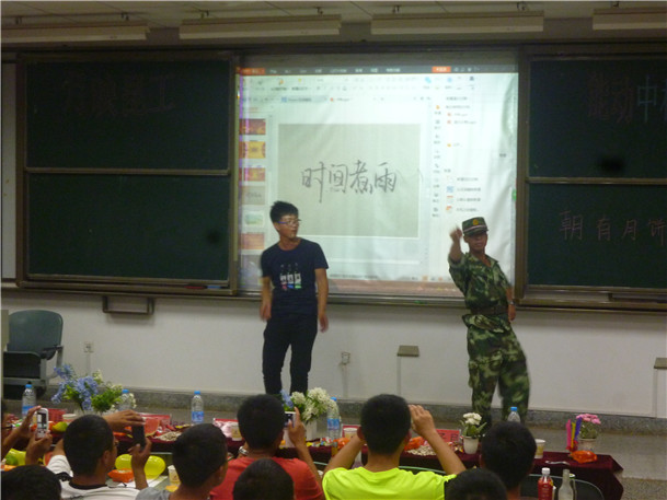 团委学生干部牵头,并安排专人对口相应班级,负责指导、帮助2014级新生班干部组织此次活动。8日晚共六个班级在六个会场同时开展联欢活动。在军训伊始,2014级各个班级班委就接到了PG赏金女王