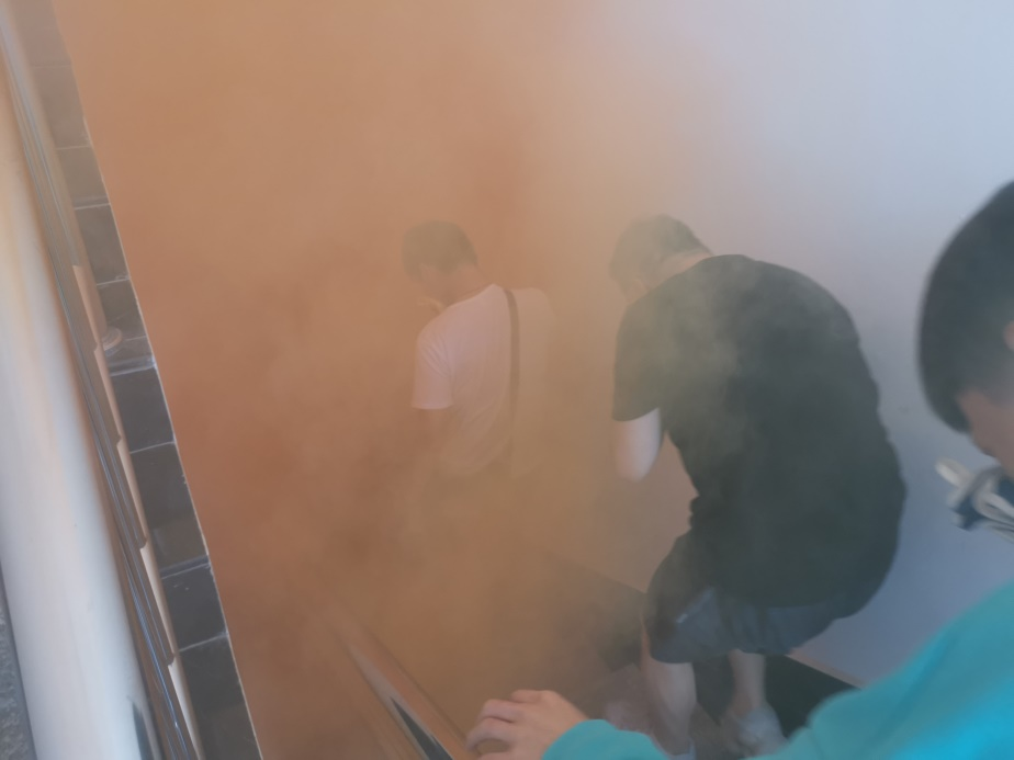 活动中,赵教官为师生进行了消防安全教育培训,师生们在工作人员的指导下现场学习了灭火器的使用,并组织师生进行了“模拟火情”逃生演练。