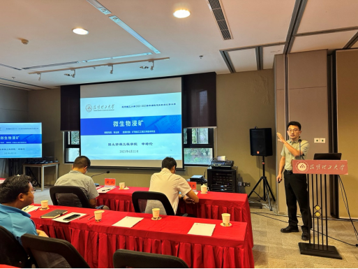 申培伦老师讲解《微生物浸矿》课程的代表章节,强调课后作业、预习下节课内容、线上线下同步教学的重要性,分享了教学比赛的十二条心得与经验。